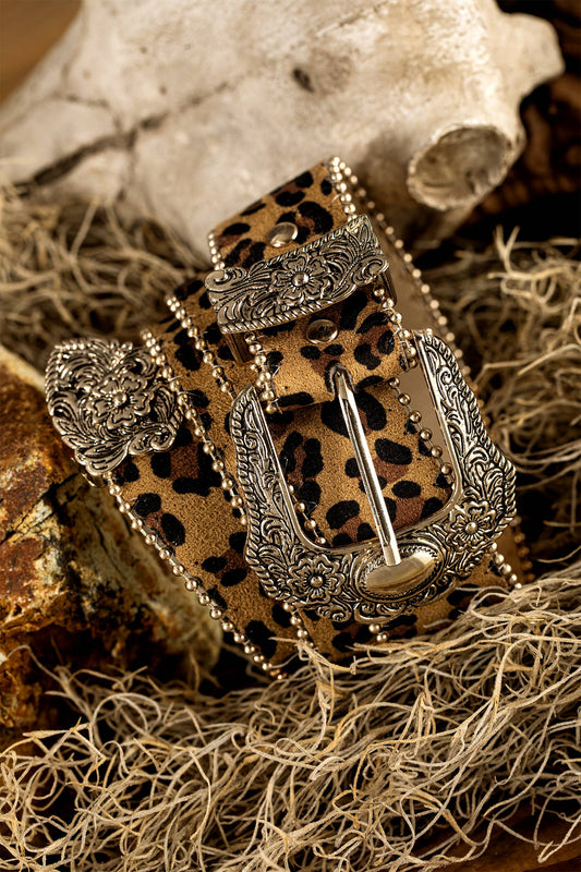 Leopard Beading Trim Retro Embossed Hardware PU Waist Belt